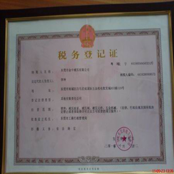 2010成立时就得到东莞工商行政管理局颁布的税务登记证,各类证书均由正规管理部门审核、认证、颁发,想找液压油泵,请选择东莞金中!